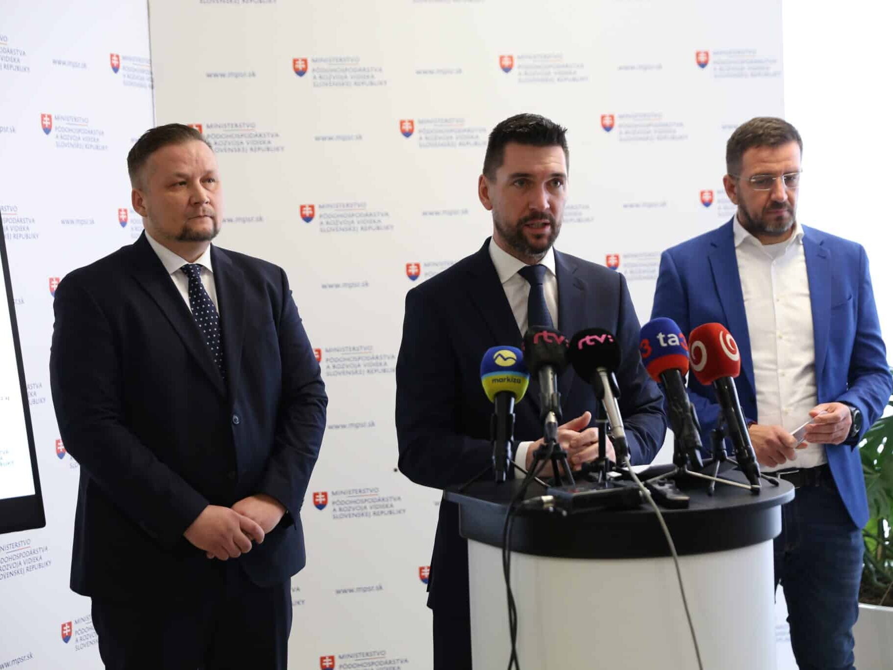 Minister pôdohospodárstva Richard Takáč na tlačovej konferencii, ktorá sa uskutočnila na Ministerstve pôdohospodárstva a rozvoja vidieka SR za účasti generálneho riaditeľa Pôdohospodárskej platobnej agentúry Mareka Čepka a predsedu Slovenskej poľnohospodárskej…